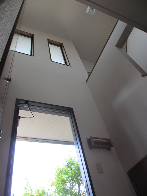 階段室の壁を抜く事で、エントランスの吹き抜けから光と風をふんだんに取りこむ階段室に仕上がりました。 |